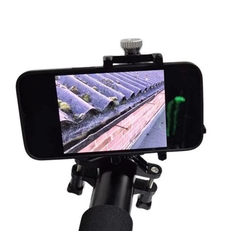 Constructed for durability and ease of use, the inspection pole maintains rigidity at full extension while remaining lightweight at just 2.4 kg, reducing operator fatigue during prolonged use. The included 4K action camera delivers sharp, detailed imagery, enabling accurate identification of blockages, damage, or debris within gutters and rooflines. A secure camera-to-pole mounting system ensures stable footage, while the phone-to-pole attachment allows live viewing and control from ground level.